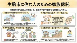 生駒市にお住まいの方で「親の将来の介護や認知症が心配」「実家の管理や売却が止まるのが怖い」「空き家になったらどうしよう」といった悩みを抱えていらっしゃる方は多いのではないでしょうか。 まこと司法書士事務所は生駒市にある司 […]